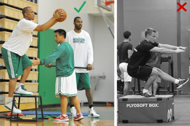 תרגילים שיהיו פחות נוחים ליישום העיקרון ושתלויים הרבה גם בטווחי התנועה בקרסול (שנוטים להיות מוגבלים אצל חלק גדול מהכדורסלנים) יהיו למשל : Front Squat, לאנג' קידמי, ו- Pistol Squat.